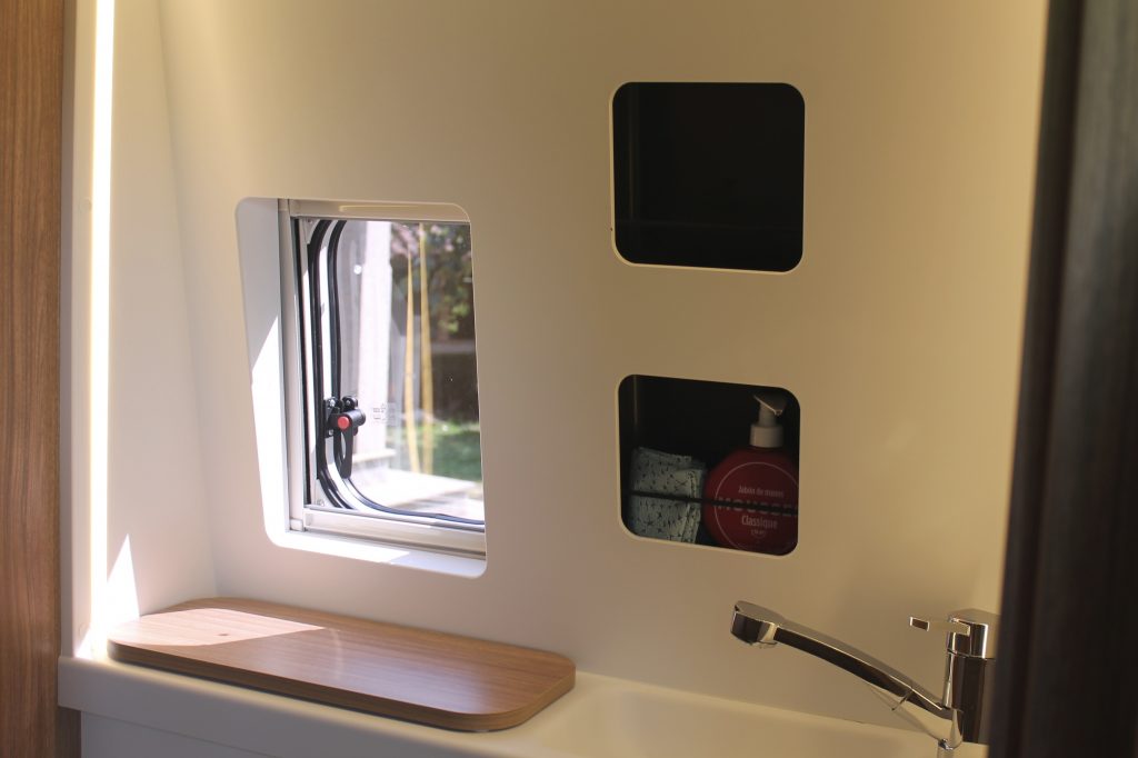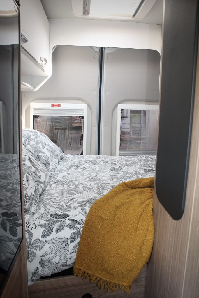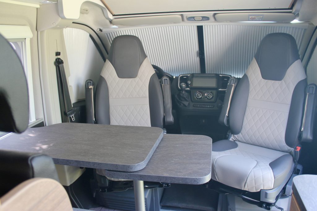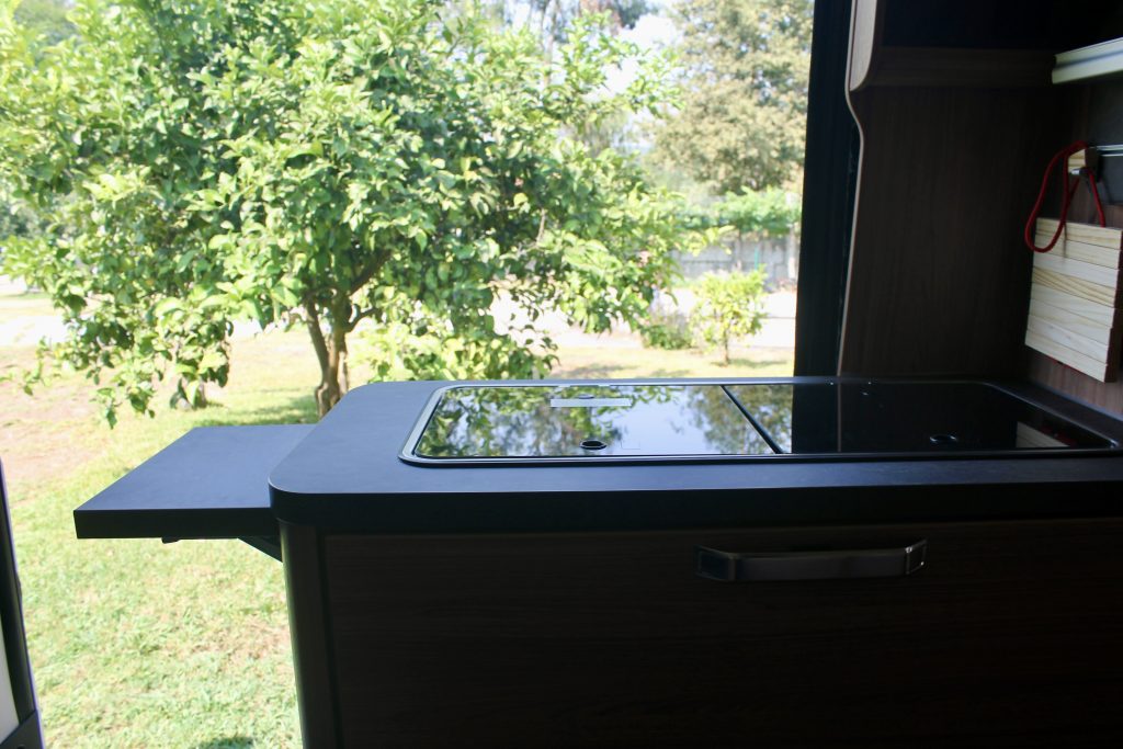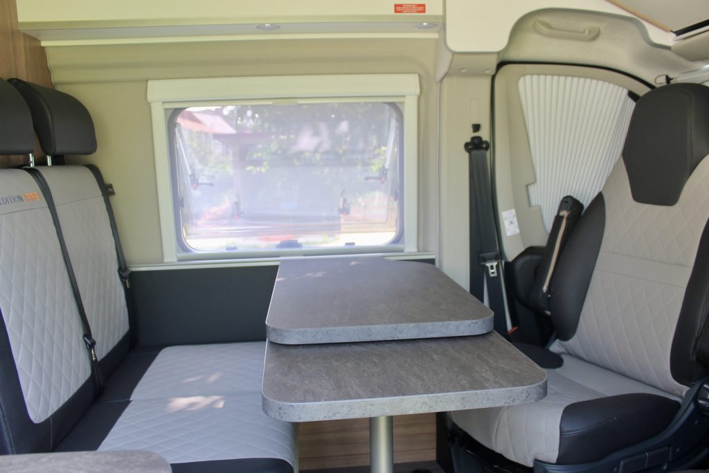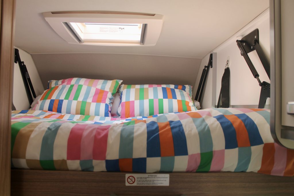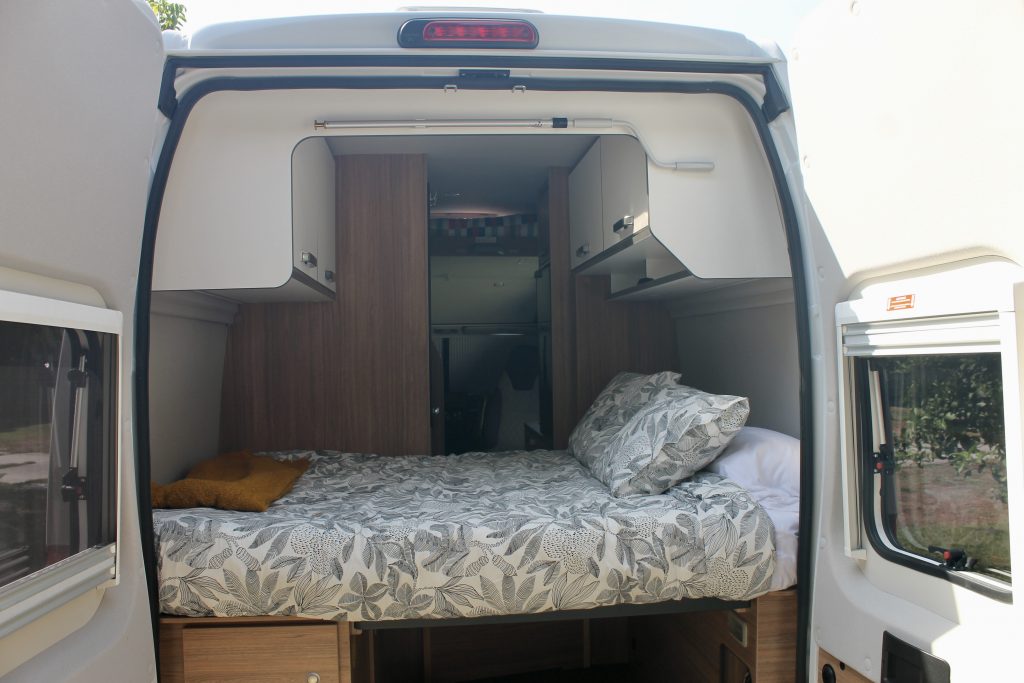 Una camper compacta y muy manejable, ideal para familias, con capacidad máxima para 4 personas. Este vehículo presenta un interior muy espacioso con una cama trasera de 1.45 m y otra cama basculante sobre el comedor de 1.35m.